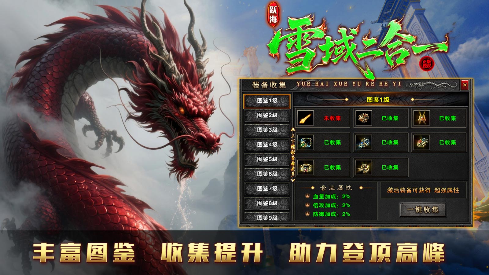 厌倦了枯燥刷怪?受够了手忙脚乱?《跃海雪域二合一》经典版本,重磅升级,畅爽体验直接拉满!我们不仅复刻原汁原味的传奇经典,更注入智能时代的全新活力,让你享受“躺着变强”的至尊体验!